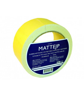 Dubbelhäftande, rivbar mattejp i väv med hårdhäftande syntetiskt häftämne. Utmärkt vid inläggning av mjuka mattor på golv, betong, spånskiva etc. Med skyddsliner. OBS! Ej lämplig vid inläggning av PVC-mattor eller mattor med PVC-undersida. Vit färg.