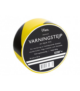 S-märkt eltejp av mjuk PVC. Genomslagshållfasthet 8000 V. Självslocknande. Används vid elinstallationer, vid skarvning av kabel, rör etc. Lägsta pålindningstemperatur -10°C. Svart.