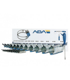1853- Ett komplett slangklammerställ som innehåller 144 st slangklammer (8-65 mm) och 100 st miniaba (8-17 mm) samt hylsmejsel. 65 cm. 1853.01 - Endast slangklammerställ 65 cm 1853.02 - Endast slangklammerställ 90 cm