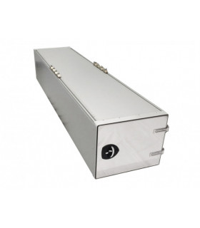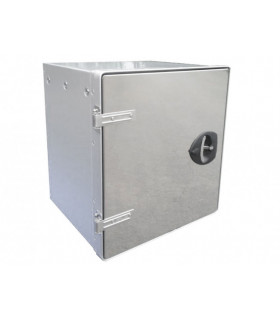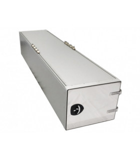 Verktygslådan är tillverkad i anodiserad aluminiumplåt, dörren och gångjärnen är tillverkade i polerat rostfritt stål. Låsbart lås i hårdplast.