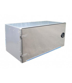 Är tänkt som förvaring för handtruck under körningen. Lådan är tillverkad i anodiserad aluminiumplåt med dörren av polerad rostfri plåt. Lås i hårdplast med gjutet vrede och gångjärn i rostfritt stål. Passar de flesta handtruckskärror.