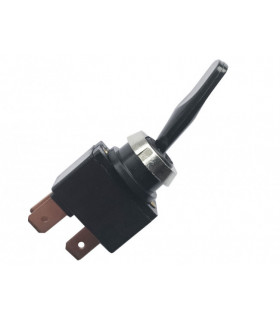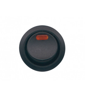 Strömbrytare med spolsäkert gummiskydd. Kontaktytor av silver. Passar håldiameter 22 mm. 150 W, 12,5 A vid 12 V.