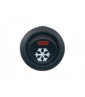 Belyst strömbrytare för extraförbrukare. Kylsymbol on/off 12 V. Max 6 A vid kontinuerlig belastning. Håldiameter 20,2 mm. Försilvrade kontakter. Hus i nylon 66. Livslängd 10 000 operationer vid 6 A belastning. Tål ej utomhusbruk.