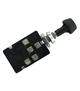 4-läges strömbrytare med svart vred. Håldiameter 26,5 mm. 12/24 V, 130 W. 6 anslutningar.