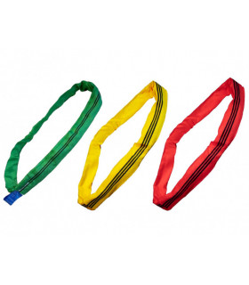 Sömlös rundsling med säkerhetsfaktor 7:1 och enkelduk. Finns i olika längder och färger.