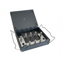 - Säkringshållare för bultsäkringar maximalt 3 st säkringar, Typ SF51 enl. ISO 8820-5 (MEGA) - 2 st strömkablar kan monteras - IP54 klass med integrerat dränage - Bultmaterial: rostfritt stål - Ledarskena: Cu, förtennad - Bultar: M8 x 16 - Fyra monteringshål i bottenlådan - Avb