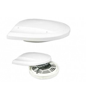En vit, förmonterad slimline takventil utrustad med intern justeringspanel och ventilationsplatta. Singapore NMB 608Z-lager. Integrerad tätningspackning i neopren. Utsugningshastigheten kan variera beroende på ventilatorns placering på fordonet, fordonets storlek och väderförhållandena.