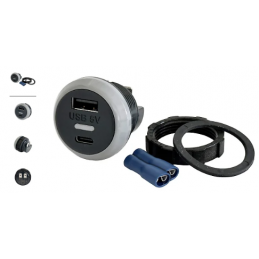PVPro-AC USB-uttag med USB-A & USB-C uttag 12-24 V, 3,6 A.