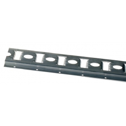 Lastlåsskenor i form av combiskenor och universalskena. Combiskena standard i galvaniserat stål med vattenavlopp, alternativt combiskena i aluminium (6082 T6) lämplig för montering i mindre skåp. 25 mm hål. Galvaniserad och zinkplaterad universalskena för infällning, heavy duty.