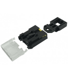 Säkringshållare för maxisäkring bestående av hållare, fästplatta, kontaktstift samt lock. Byggbar. Delarna säljs var för sig.