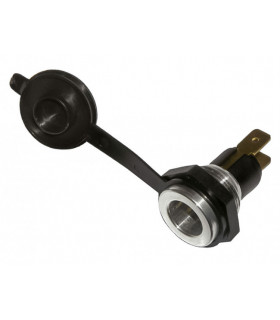 2-poligt strömuttag för DIN-kontakt med flatstiftsanslutning. Dosa med lock, 12 mm uttag. Förp/st: 10.