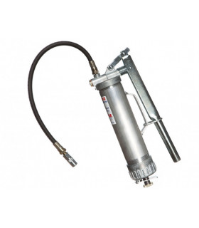 Smörjspruta för mindre smörjbehov t.ex. på skogsmaskiner, lastbilar etc. Helgjutet ventilhus. Inkl. 4-backs hydraulmunstycke och rör. Avsedd för 400 g fettpatron.