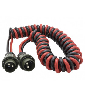 Spiralkabel 2-ledare med kabelarea 2x35 mm². Effektiv arbetslängd 4 meter. 2 stickproppar med skruvanslutning. Vikt: 4,95 kg. NATO-NATO proppar.