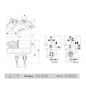 DOGA torkarmotor modell 319 med 2 drivaxlar A12 x M8 gänga och splines. DIN 72783. Finns med 1 eller 2 hastigheter. Max kapacitet 50 Nm. Kontinuerligt vridmoment 10 Nm. Automatisk stopp samt försedd med RFI-avstörning enligt norm 95/54/CE. Max. längd 1500 mm arm/blad tillsammans.