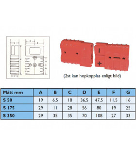 S Connector S175 för 50 mm² kabelarea. 2 st av samma färg kan hopkopplas. Levereras komplett med 2 kontaktstift.