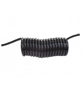 Spiralkabel 7-ledare med kabelarea 6x1 mm² + 1x2 mm². Effektiv arbetslängd 3 alternativt 3,5 meter. Diameter spiral 80 mm. Diameter kabel 11 mm. Färg på innerledare: gul, röd, svart, grön, brun och blå (1,0 mm²) resp. vit (2,0 mm²). Ytterhölje i svart TPC-ET (Termoplastisk Co-Polyester Elastomer).