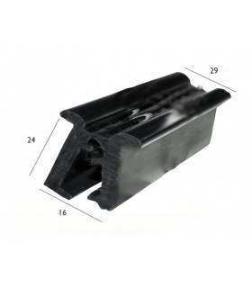 Gångjärnslist i hård/mjuk PVC. Klarar belastning om 100 kg/löpmeter vid horisontell montering. UV-beständig, färg svart. Temperaturområde -40°C till 50°C. Öppningsradie 165°.