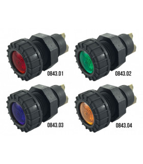 Strömbrytare med skruvanslutning. Passar håldiameter 17,5 mm. För 6-24 V med 2 W glödlampa. Djup max 10 mm. Sockel BA9s. Exkl. glödlampa. Lamphållare.