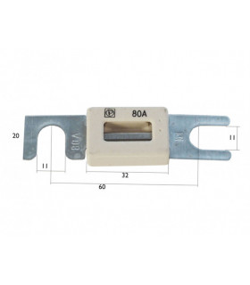 60 mm, 80 V med skyddshus. För elfordon, truckar etc. Maxspänning 80 V. DIN 43 560/1. Material 35-80 A: Zink, 100-425 A: Koppar. Skyddshus: Keramik/steatit.