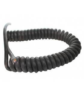 Spiralkabel 10-ledare med kabelarea 9x1,0 mm² + 1x2,0 mm². Effektiv arbetslängd 3/3,5/4 meter. Diameter spiral 48 mm. Diameter kabel 14,5 mm. Färg på innerledare: gul, blå, orange, grön, röd, grå, brun, svart och rosa (1,0 mm²) resp. vit (2,0 mm²). Ytterhölje i svart TPE (Termoplastisk Elastomer).