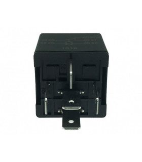 Växlande minirelä 5-stift med flatstiftsanslutningar 6,3 mm och fäste. Belastbarhet (vid 80°C) 30/20 A vid 12 V. H-nr: 4RD 933 332-041. Fabrikat: HELLA.