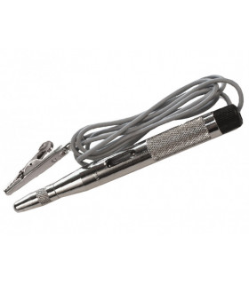 Av stål med spets. Glödlampa 12 V 3 W ingår. Klarar 6-24 V.