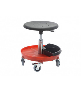 Mycket användbar där man har låga arbetshöjder och vill skona rygg, knän och vrister. Sitthöjd: 360 - 475 mm. Mjukt fjädrande sits och fem svängbara hjul varav två är låsbara. Verktygshylla under sitsen medföljer.