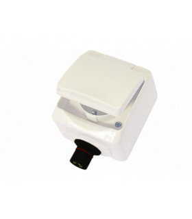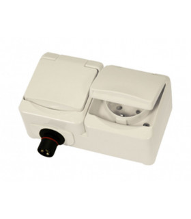 Enkelt eller dubbelt utanpåliggande eluttag från DEFA med fjäderbelastade lock för 230 VAC, 16 A som är anpassat DEFA PlugIn systemet. Kan monteras utomhus, men då under tak. IP-klass: 44.
