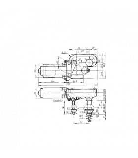 DOGA torkarmotor modell 316 (tidigare 116) med 6 mm axeldiameter. Med parkeringsläge. Kontinuerligt vridmoment 1,8 Nm kp cm. Utan strömställare. Max. längd 850 mm arm/blad tillsammans. Med parkeringsläge (höger).