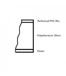 Ljuddämpningsmaterial med 20 mm självhäftande polyetherskumplast och PVC-film som ytskikt. Används som beklädnad i förarhytter etc. Temperaturområde -30° till +90°C. Brandegenskaper: Enligt US-norm FMVSS-302.