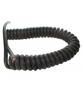 Spiralkabel 15-ledare med kabelarea 3x2,5 mm² + 12x1,5 mm². Effektiv arbetslängd 3 alternativt 4 meter, 21 resp. 28 varv. Ytterhölje i svart oljebeständig polyuretan. ADR-godkänd samt godkänd enligt ISO 4141.