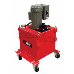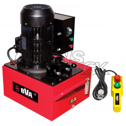 Hydraulpump 230 V, arbetstryck 700 bar, 0,37 kW, tank 3,8 liter, 2 steg, elektrisk ventil 3/3, kan användas för enkelverkande cylindrar.