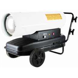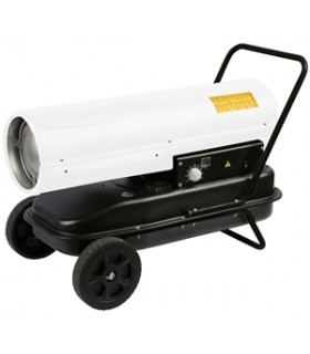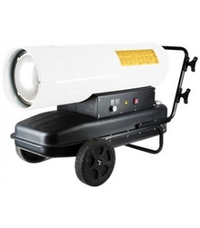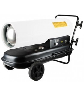 Mobil diesel/värmefläkt perfekt för torkning av byggplatser eller uppvärmning av välventilerade utrymmen. Förbränningskammaren är i rostfritt stål.