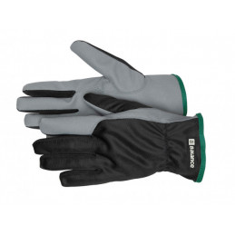 Montagehandske i syntetläder med förstärkt pekfinger. För bästa möjliga komfort har handskarna resår runt handleden. Kromfria.