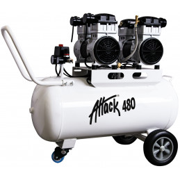 Tyst oljefri kompressor. Utrustad med stora hjul och handtag för enkel förflyttning. Dubbla fötter fram för stadig placering. Stor manometer för enkel avläsning. Oljefri teknik är underhållsfri. Varvtal: 1450 v/min