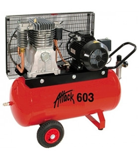 2-cylindrig, remdriven kompressor, där remskivan på kompressordelen har fläktvingar för bra kylning. Lågt varvtal. Kompressorn är utrustad med tryckströmbrytare, manometer, säkerhetsventil, reduceringsventil, snabbkoppling och hjul. Garanti 3 år mot material och fabrikationsfel.