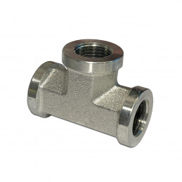Beskrivning T-rör med inv-utv-utv. gängning Dim: 3/8" Nom: G10 Material: Smidd