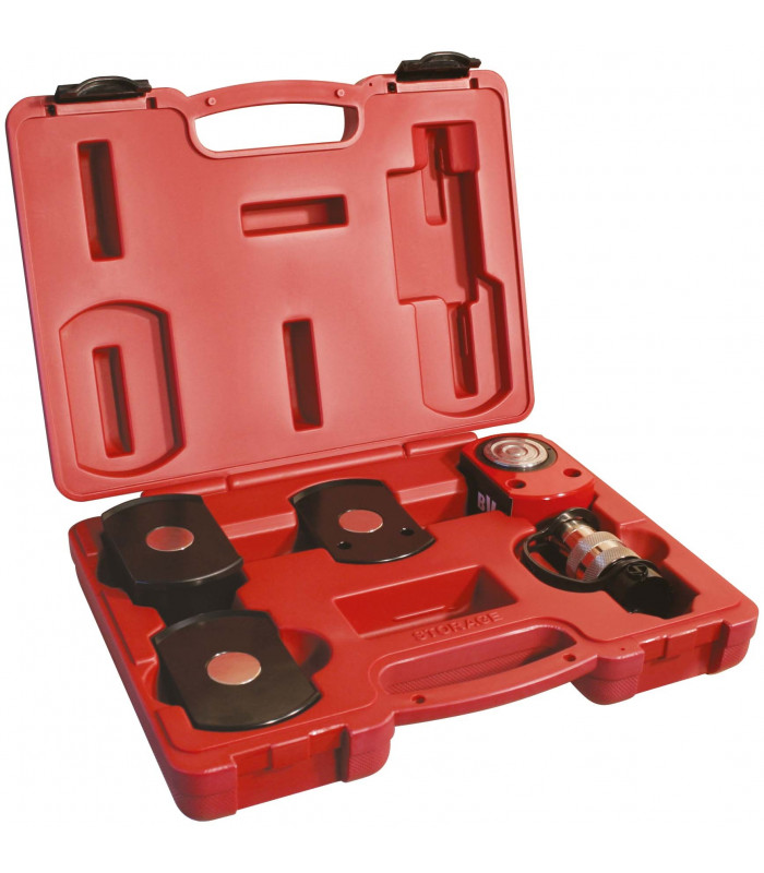 FLAT CYLINDER 10 TON SETSet med flat lågbyggd cylinder 10 ton HF1005 (Läs mer här).Tre magnetiska distanser 10, 20 och 40 mm.Förpackat i gjuten plastlåda. Används med fördel i trånga utrymmen. Cylindern är påbyggbar med distanser för största möjliga flexibilitet.