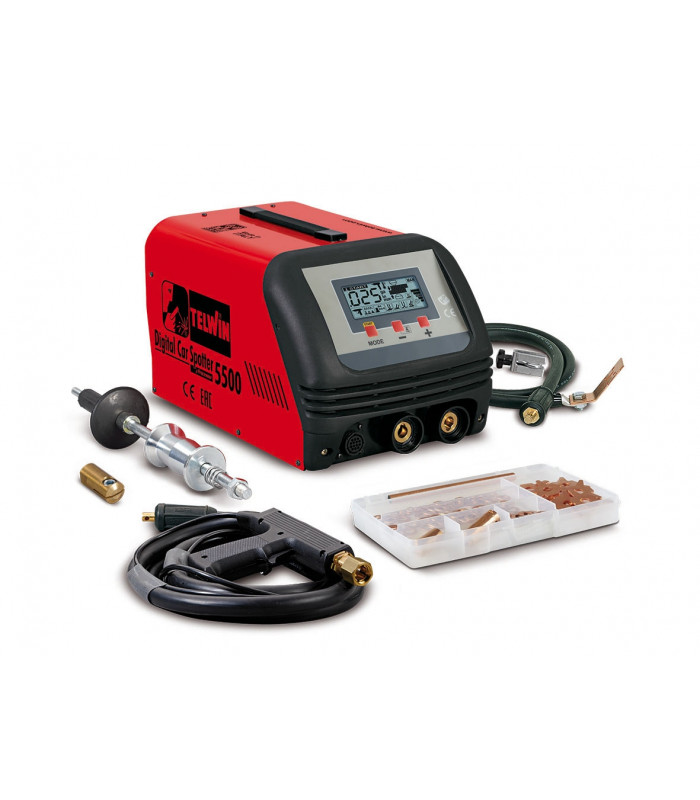 Telwin Digital Car Spotter 5500 + tillbehör. Tvåfas, mikroprocessorstyrd, spot-svetsmaskin lämplig för användning i bilen, fordonsverkstäder och skadeverkstäder.