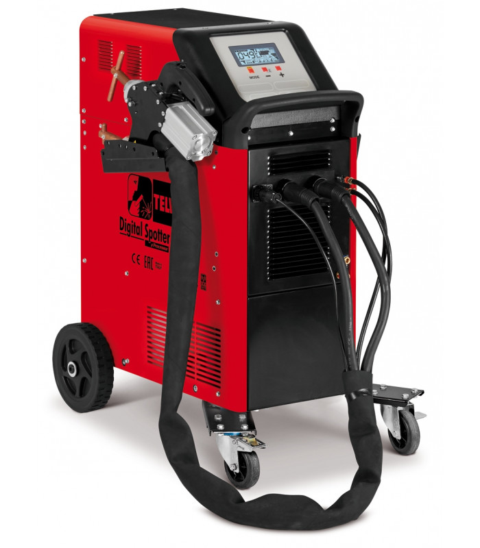 Mikroprocessorstyrd, elektronisk punktsvetsmaskin lämpad för användning inom fordonsreparations- och industriområdet. Den digitala, LCD, multifunktions kontrollpanel möjliggör automatisk reglering av punktsvetsparametrar enligt det valda verktyget och plåttjocklek. Digital Spotter är en arbetsstation som tillåter flera ingrepp som kontinuerlig och PULSE-punktsvetsning, punktsvetsning av skruvar, brickor, stift, punktsvetsning / dragning av speciella brickor, intermittent svetsning, metallplåtuppvärmning.