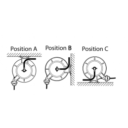 Slangstyrarmarna är justerbara i tre olika lägen enligt till slangupprullningsinstallationen (pos. A-B-C).