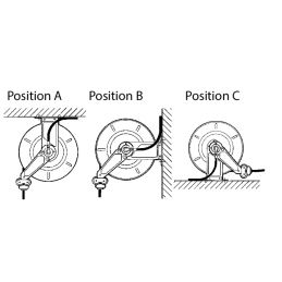 Fästkonsolerna kan monteras i tre olika positioner på slangrullen för att tillåta vägg, tak eller golvmontage.