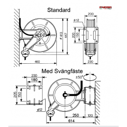 Slangvinda försedd med ställbara utmatningsarmar. Lätt att placera, även i trånga utrymmen. Kan även takmonteras. Vindan är pulverlackerad och utrustad med returfjäder. Kan kompletteras med svängbart väggfäste om slangen skall dras ut eller matas in i sidled. Slitaget på vindan blir mindre och slangen rullas upp jämnare.  Oljebeständig gummislang.