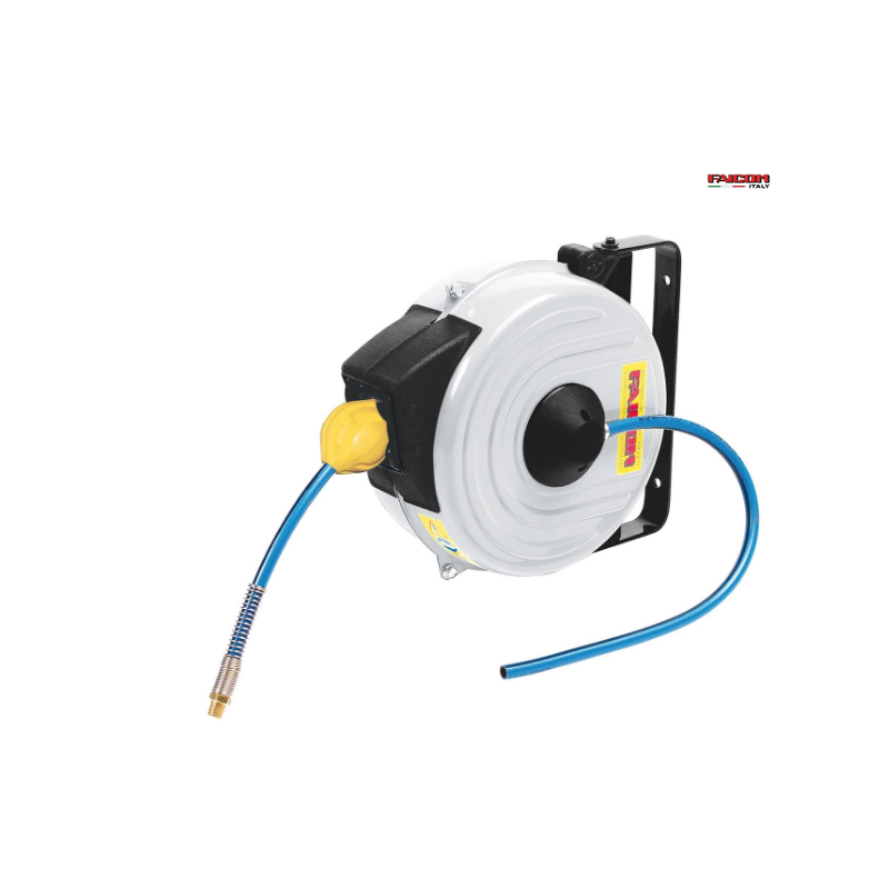 Slangupprullare med livsmedelsklassad slang från Italienska Faicom Max tryck: 10bar vid 70°C, 20bar vid 25°C Automatisk slangupprullare avsedd för tvättoperationer med vatten och diskmedel vid olika tryck- och temperaturförhållanden. Slangen rullas upp automatiskt och kan av användaren stoppas i vilken längd som helst.