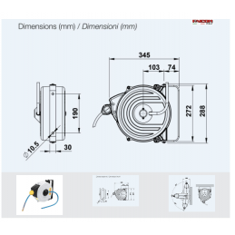 Vinda med fjäderretur gjord för distribution av gasol, propan & metan.Slang i enlighet med ISO3821. Utrustad med anslutningsslang, skyddskåpor & 4-hjulsstyrning.