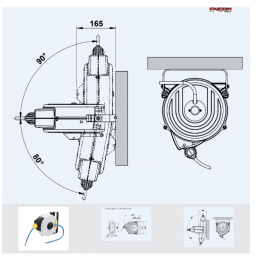 Luft, 20 barSlangvindorna är kapslade och tillverkade av stål. Slangen är av polyuretan och mjuk även vid låga temperaturer. De är utrustade med returfjäder. Vindorna levereras med svängbart väggfäste.