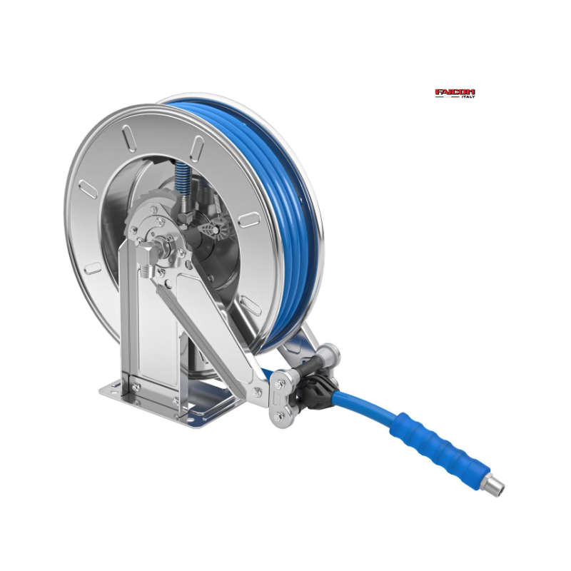 MPX200805 är en rostfri slangupprullare lämplig för distribution av luft, vatten och tvättmedel för professionellt bruk.