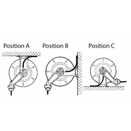 Slangstyrarmarna är justerbara i tre olika lägen enligt till slangupprullningsinstallationen (pos. A-B-C).