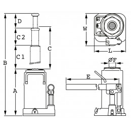Lyftkapacitet 2 ton. Kompakt konstruktion med spindelförlängare för optimal användning av slaglängden. 2-delat pumphandtag.