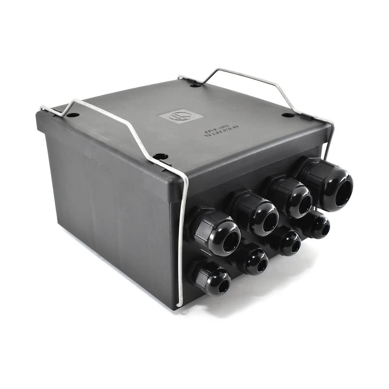 Av svart plast i vattentätt utförande. Bestyckad med 15-polig kopplingsplint med 4 + 4 flatstiftsanslutningar per pol. 16 st kabelingångar (10 x PG9 + 5 x PG13 + 1 x PG16 monterade). Storlek 167 x 157 mm. Höjd 99 mm. Finns även i en version med extra gummitätningar, special samt special med 2047.03 plint. Se olika varianter i rullisten här nedanför. Tätningsklass IP69K. ADR-godkänd.